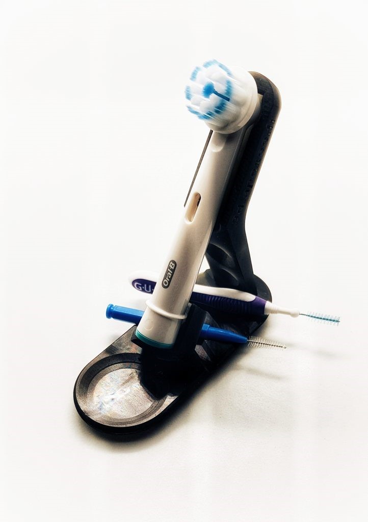 Pour éviter le développement des bactéries, un support indépendant, plus facile à nettoyer que la base de recharge, très utile si vous n'utilisez la base que pour la recharge (les nouvelles brosses n'ont besoin que d'une recharge de temps en temps -à peine 3% du temps total-, ça n'est pas utile de laisser le chargeur branché)